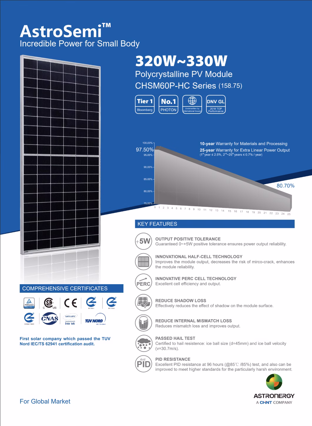 ASTRONERGY 330W (Ezüst Keretes) CHSM60P-HC